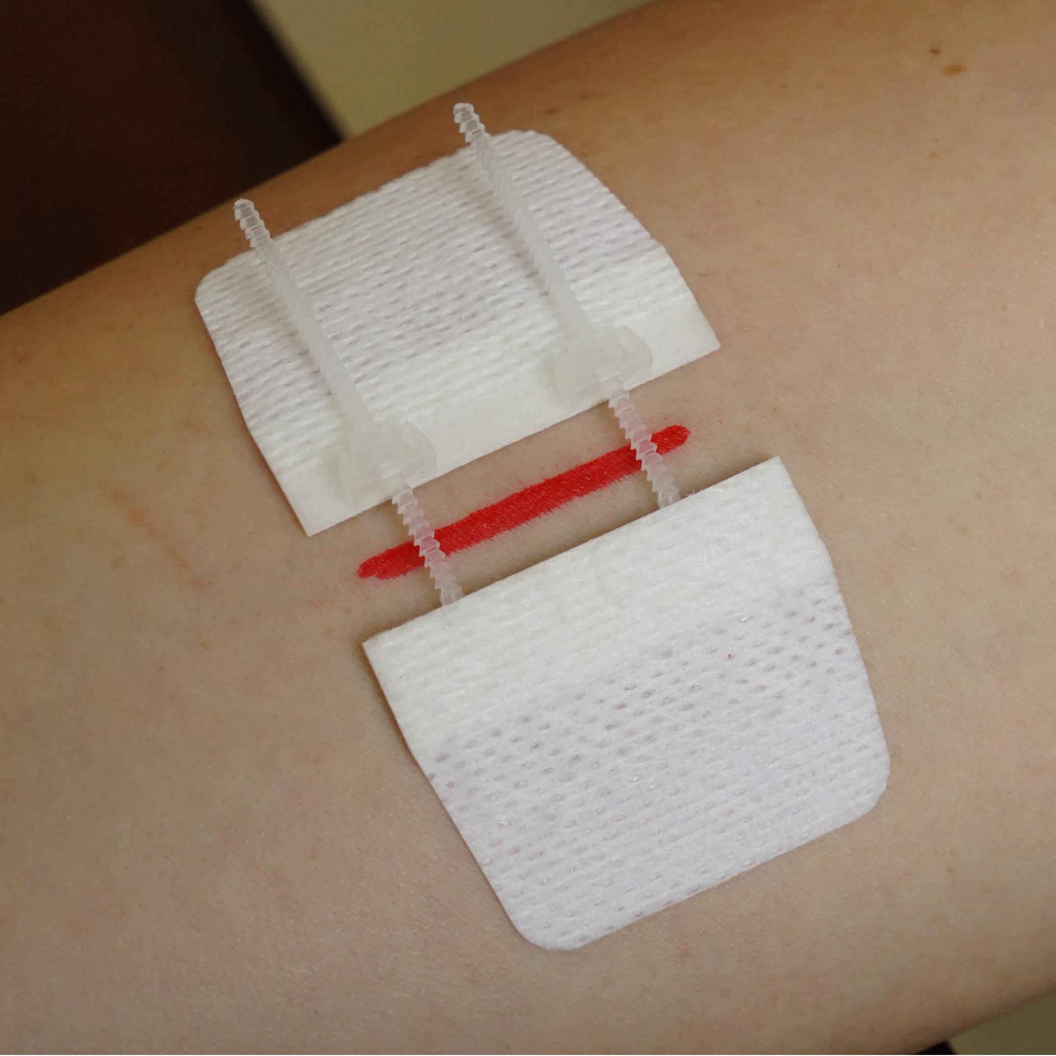This sheet material is made from acrylic medical tape and nylon. ltsstructure creates a uniform counterforce between the inward pullingforce of the products and the outward tension of the wound, achievingthe purpose of non-invasive suture-free, wound tension-reducing andpreventing the wound from widening. lt has the advantages ofbreathability, low sensitivity, soft and long-lasting adhesion, uniformtension reduction, easy operation and portability, reversible callback of the tie rod, and reduction of scar hyperplasia.